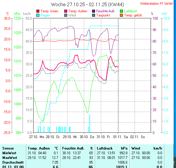 | Letzter Regen |  |  | vor 1 Tag, 10 Stunden, 37 Minuten 30.10.2025, 08:57 Uhr |